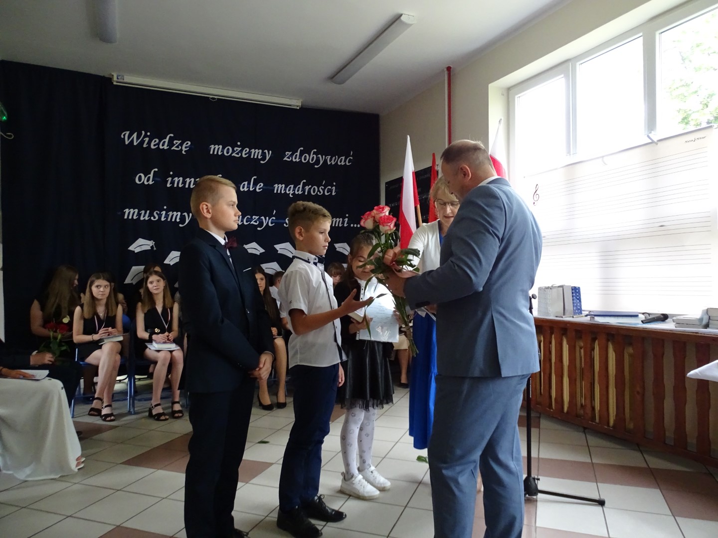 Po apelu uczniowie, wraz ze swoimi wychowawcami, rozeszli się do klas, gdzie otrzymali świadectwa. Rodzice absolwentów zaprosili gości, pana dyrektora, nauczycieli, pracowników szkoły i uczniów klasy 6, na słodki poczęstunek.