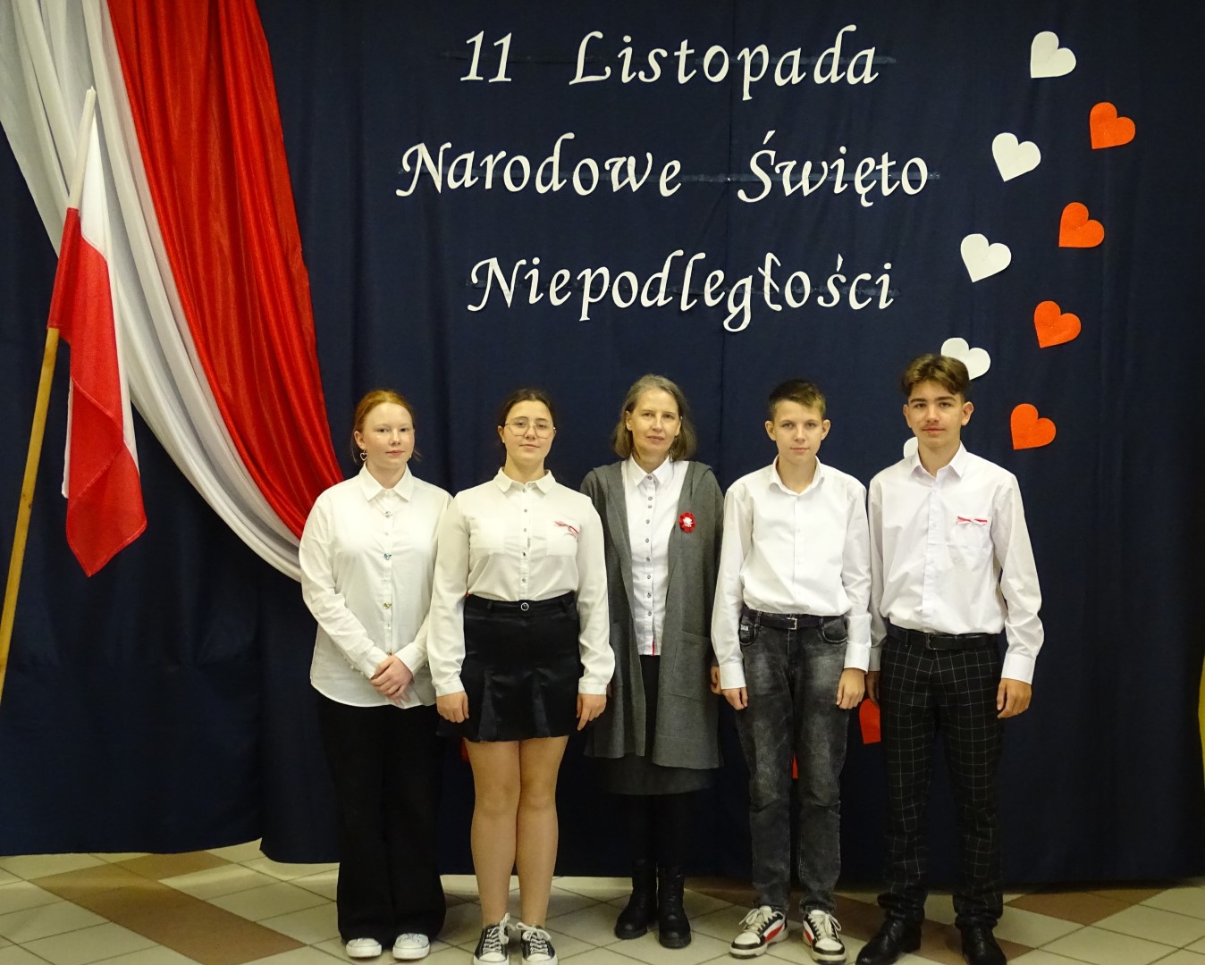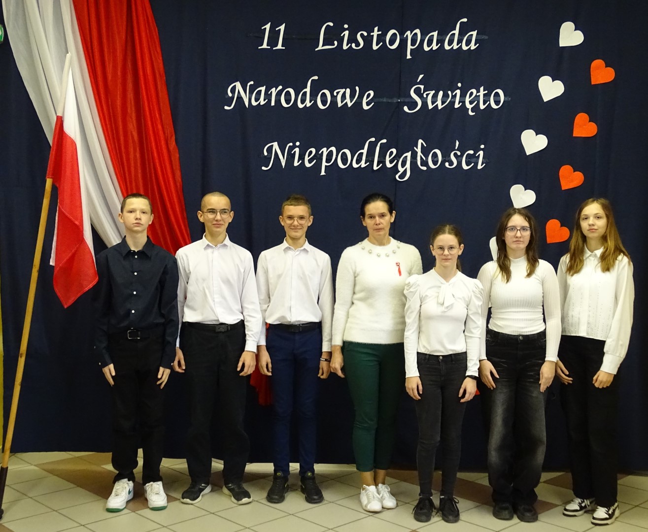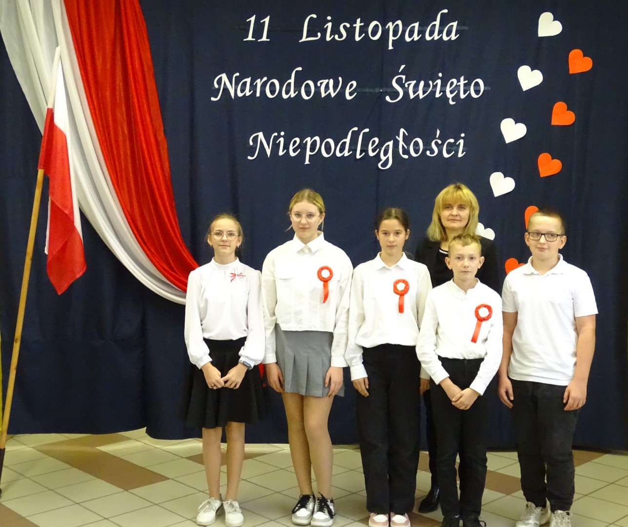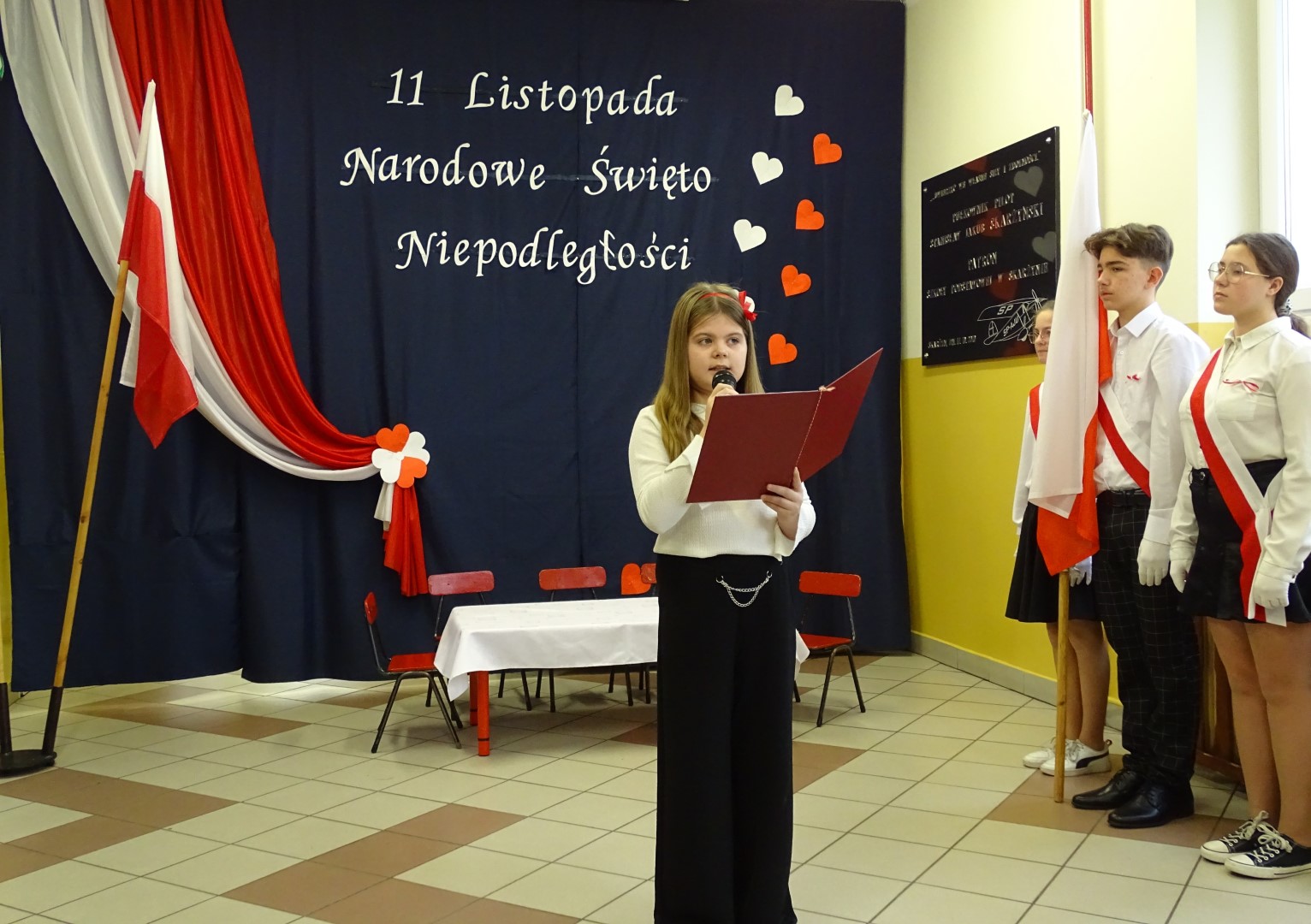 ,,Tym co padli za Ojczyznę, hołd wdzięczności Polska składa” - te słowa towarzyszyły nam w dniu 8 listopada podczas uroczystego apelu poświęconego 106. rocznicy odzyskania przez Polskę niepodległości. Rocznica tego święta, a wraz z nią uroczyste świętowanie tak wielkiego wydarzenia, na stałe wpisała się w kalendarz szkolnych uroczystości. Data 11 listopada uświadamia nam, że jest to najważniejszy dzień w historii naszego kraju. Apel uświetniły wiersze, pieśni patriotyczne oraz scenka pt. ,,Lekcja historii” zaprezentowane przez szkolnych artystów. Uczniowie swoją postawą i zaangażowaniem udowodnili, że są prawdziwymi patriotami. Patriota to nie tylko człowiek stający w obronie kraju podczas wielkich zagrożeń. Jest nim również osoba, która w codziennym życiu szanuje symbole narodowe, która pamięta o ważnych dla kraju i jego historii wydarzeniach czy rocznicach. Współczesny patriota to człowiek kultywujący pamięć o swoich przodkach. To my wszyscy – nauczyciele, pracownicy szkoły, rodzice i uczniowie - swoją nauką, pracą i poświęceniem sprawiamy, że Polska każdego dnia promienieje blaskiem wolności. Na zakończenie Dyrektor szkoły - Krzysztof Jesionek podziękował uczniom za występ. Zwrócił uwagę na to, jak ważne jest to święto dla wszystkich Polaków oraz docenił postawę całej społeczności uczniowskiej.