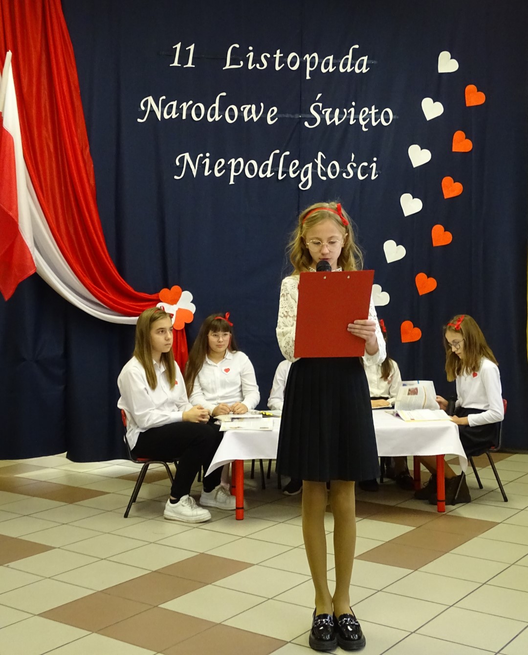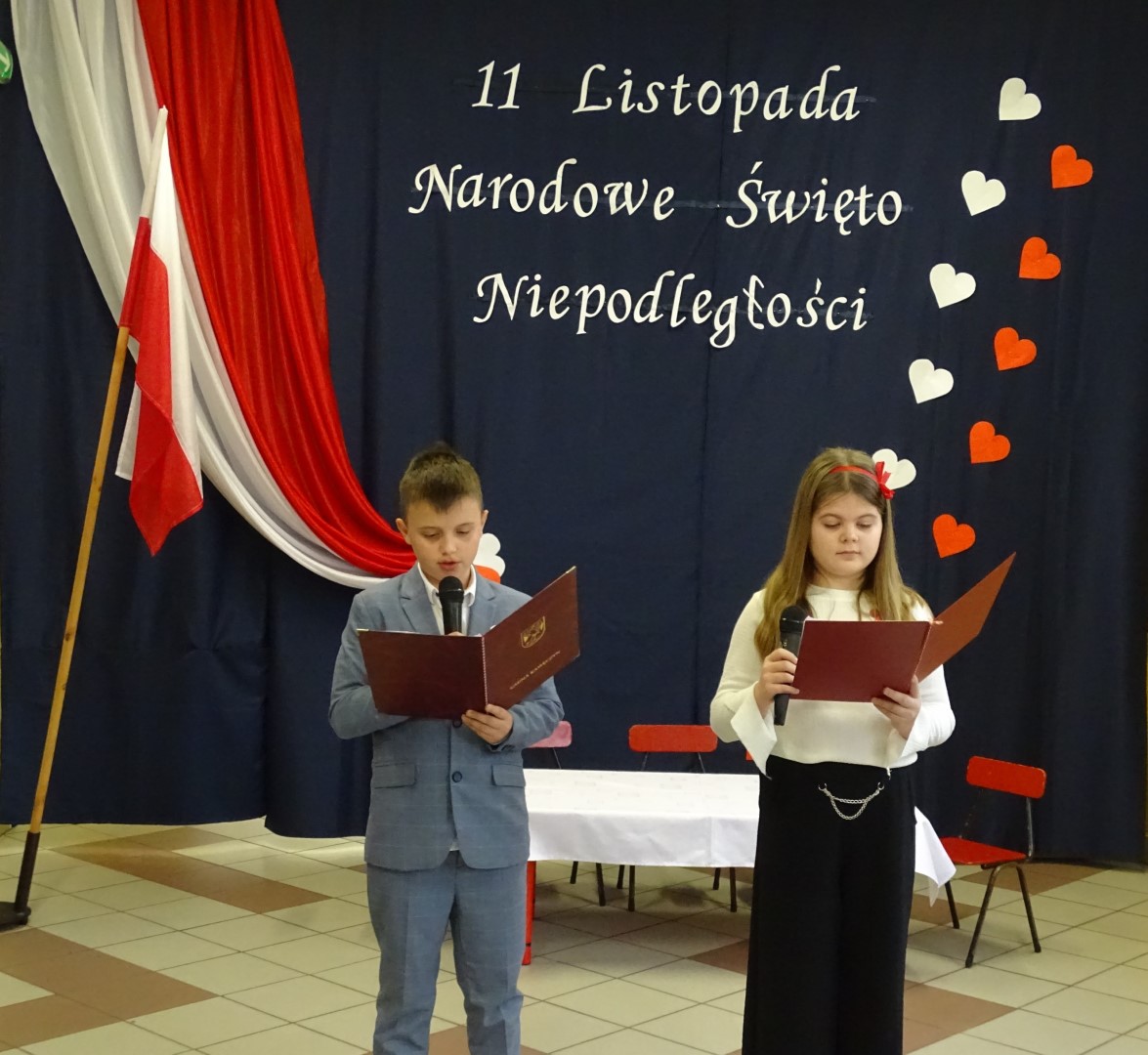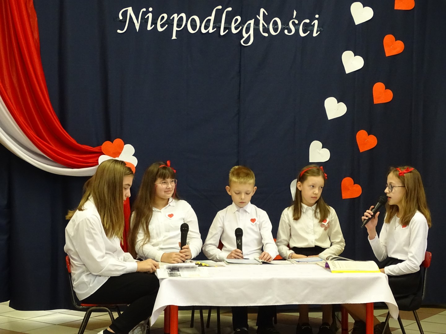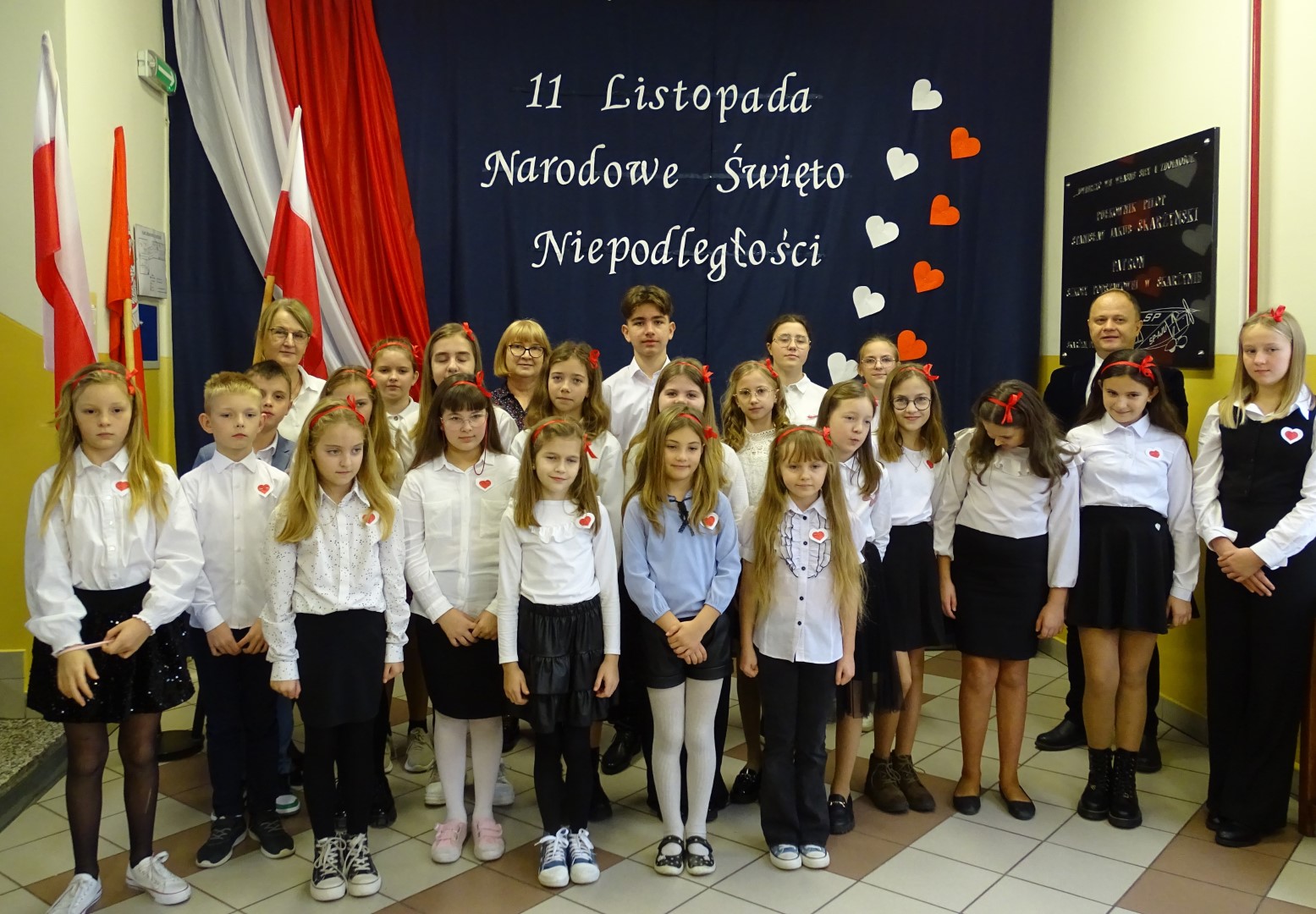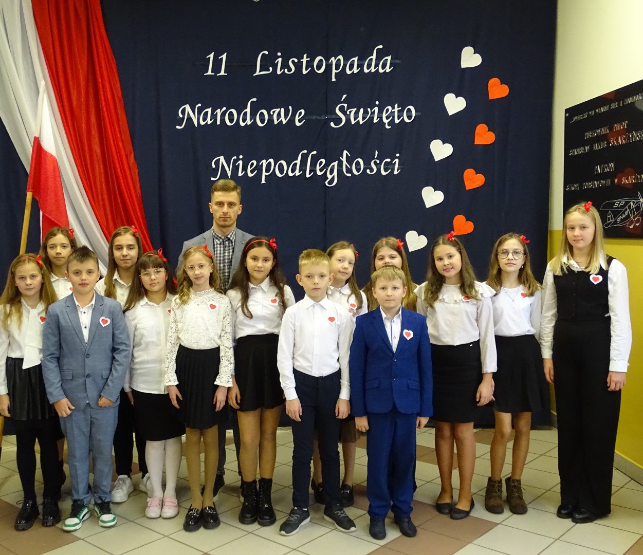 ,,Tym co padli za Ojczyznę, hołd wdzięczności Polska składa” - te słowa towarzyszyły nam w dniu 8 listopada podczas uroczystego apelu poświęconego 106. rocznicy odzyskania przez Polskę niepodległości. Rocznica tego święta, a wraz z nią uroczyste świętowanie tak wielkiego wydarzenia, na stałe wpisała się w kalendarz szkolnych uroczystości. Data 11 listopada uświadamia nam, że jest to najważniejszy dzień w historii naszego kraju. Apel uświetniły wiersze, pieśni patriotyczne oraz scenka pt. ,,Lekcja historii” zaprezentowane przez szkolnych artystów. Uczniowie swoją postawą i zaangażowaniem udowodnili, że są prawdziwymi patriotami. Patriota to nie tylko człowiek stający w obronie kraju podczas wielkich zagrożeń. Jest nim również osoba, która w codziennym życiu szanuje symbole narodowe, która pamięta o ważnych dla kraju i jego historii wydarzeniach czy rocznicach. Współczesny patriota to człowiek kultywujący pamięć o swoich przodkach. To my wszyscy – nauczyciele, pracownicy szkoły, rodzice i uczniowie - swoją nauką, pracą i poświęceniem sprawiamy, że Polska każdego dnia promienieje blaskiem wolności. Na zakończenie Dyrektor szkoły - Krzysztof Jesionek podziękował uczniom za występ. Zwrócił uwagę na to, jak ważne jest to święto dla wszystkich Polaków oraz docenił postawę całej społeczności uczniowskiej.
