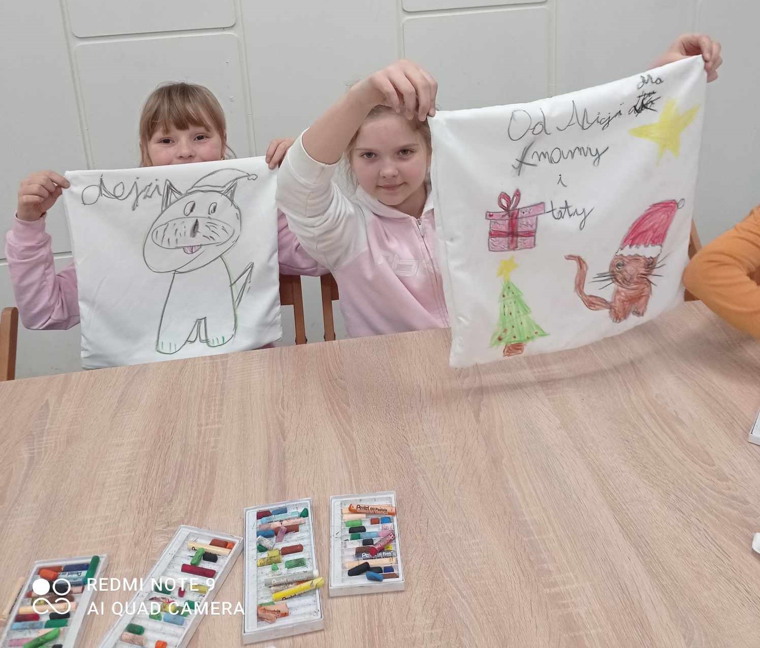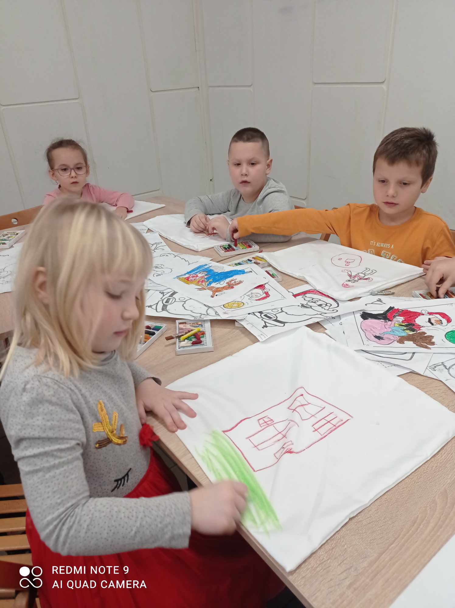 Kolejnym punktem wycieczki były warsztaty bożonarodzeniowe w Muzeum Miasta Turku im. Józefa Mehoffera, które miały na celu kultywowanie tradycji i zwyczajów bożonarodzeniowych. Dzieci podczas warsztatów ozdabiały przy użyciu kolorowych pasteli poszewki na poduszki. Wszystkie poszewki wyszły przepiękne, a każda z nich była inna. Dzieci ozdobione poszewki na poduszki zabrały do domów.