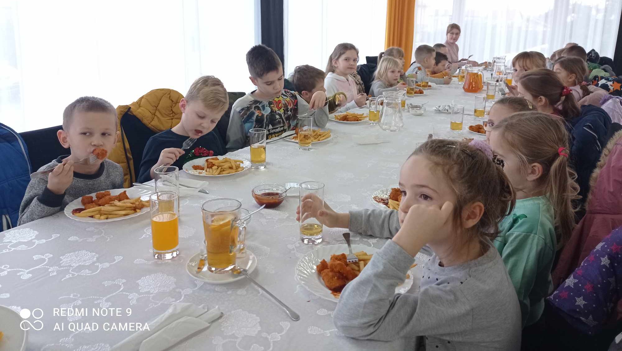 Wycieczka odbyła się 20 grudnia 2023 roku. Pierwszym punktem wycieczki były warsztaty w CDN Publicznej Bibliotece Pedagogicznej filia w Turku, gdzie dzieci wzięły udział w zajęciach pt. „Światłem malowane” – warsztaty oparte na treści książki pt. „Kuku zostaje Świętym Mikołajem”. Po wysłuchaniu treści utworu zadaniem dzieci było wykonanie świątecznych witrażyków. Celem warsztatów było rozwijanie zainteresowań czytelniczych, wyobraźni twórczej, umiejętności plastycznych oraz wzbogacanie słownictwa.