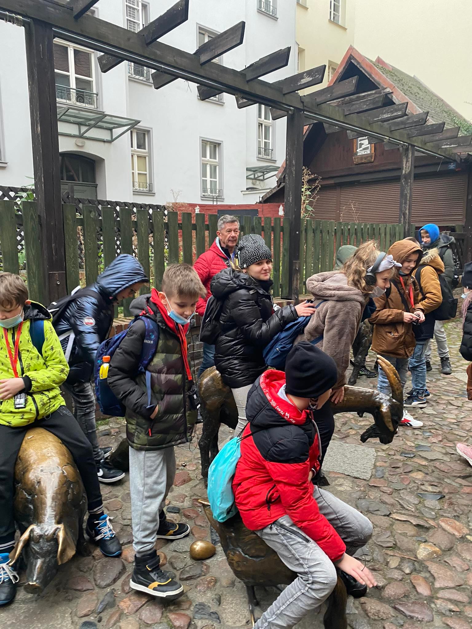W poniedziałek 15.11.2021 roku uczniowie klas IV-VIII odwiedzili stolicę Dolnego Śląska. Pierwszym punktem programu było Hydropolis – wrocławskie centrum wiedzy o wodzie – jedno z najnowocześniejszych tego typu obiektów w Europie. Pokazuje różne oblicza wody za pomocą interaktywnych urządzeń i multimedialnych aplikacji. Pobyt w Hydropolis robi naprawdę niesamowite wrażenie. Później rejs statkiem po Odrze na Ostrów Tumski – najstarszą część Wrocławia z gotycką katedrą Jana Chrzciciela, Muzeum Archidiecezjalnym i … Mostem Zakochanych, gdzie wrażenie robi ogromna ilość kłódek, które przyczepili do mostu zakochani. Dalej spacerkiem uczniowie dotarli do Gmachu Głównego Uniwersytetu Wrocławskiego. Pokonali bardzo wysokie schody, by z Wieży Matematycznej podziwiać panoramę miasta. Potem dotarli do Rynku, tętniącego życiem o każdej porze dnia i nocy. Tutaj podziwiali Sukiennice, Ratusz, Pręgierz i otaczające Rynek piękne mieszczańskie kamieniczki. Zobaczyli też Stare Jatki, a tam pomnik zwierząt rzeźnych, wysłuchali ciekawych historii o mieście i jego mieszkańcach. Na każdym kroku napotykali Wrocławskie Krasnale – niewielkie figurki tych miłych stworzonek, których jest już ponoć około 500 sztuk. Ostatnią najbardziej wyczekiwaną atrakcją przez dzieci i młodzież była wizyta w McDonadzie. Posileni ulubionymi przysmakami ruszyli w drogę powrotną. W autobusie czas umilały świetne przeboje. Wspaniała atmosfera towarzyszyła uczniom całą wycieczkę. Humory dopisywały. Można powiedzieć, że zmęczeni, ale zadowoleni ze śpiewem na ustach wjechali do Skarzyna, gdzie czekali na nich stęsknieni rodzice.