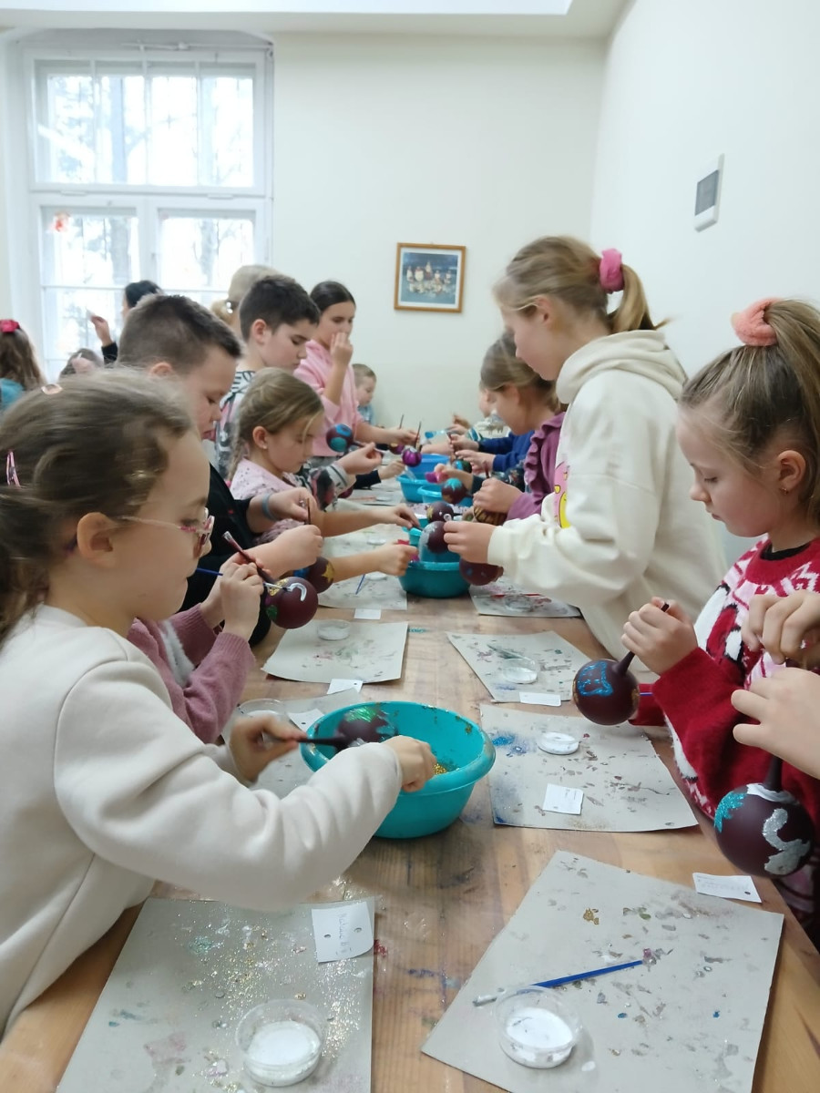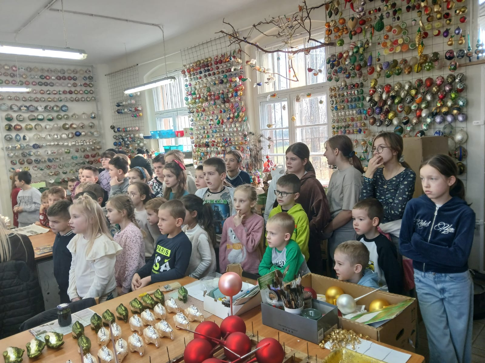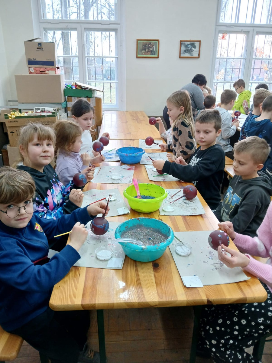 Największą atrakcją okazały się warsztaty plastyczne, podczas których każdy mógł samodzielnie ozdobić własną bombkę. Uczniowie wykazali się ogromną kreatywnością, tworząc niepowtarzalne wzory i kompozycje kolorystyczne. Gotowe ozdoby zabrali ze sobą jako pamiątkę z wycieczki.