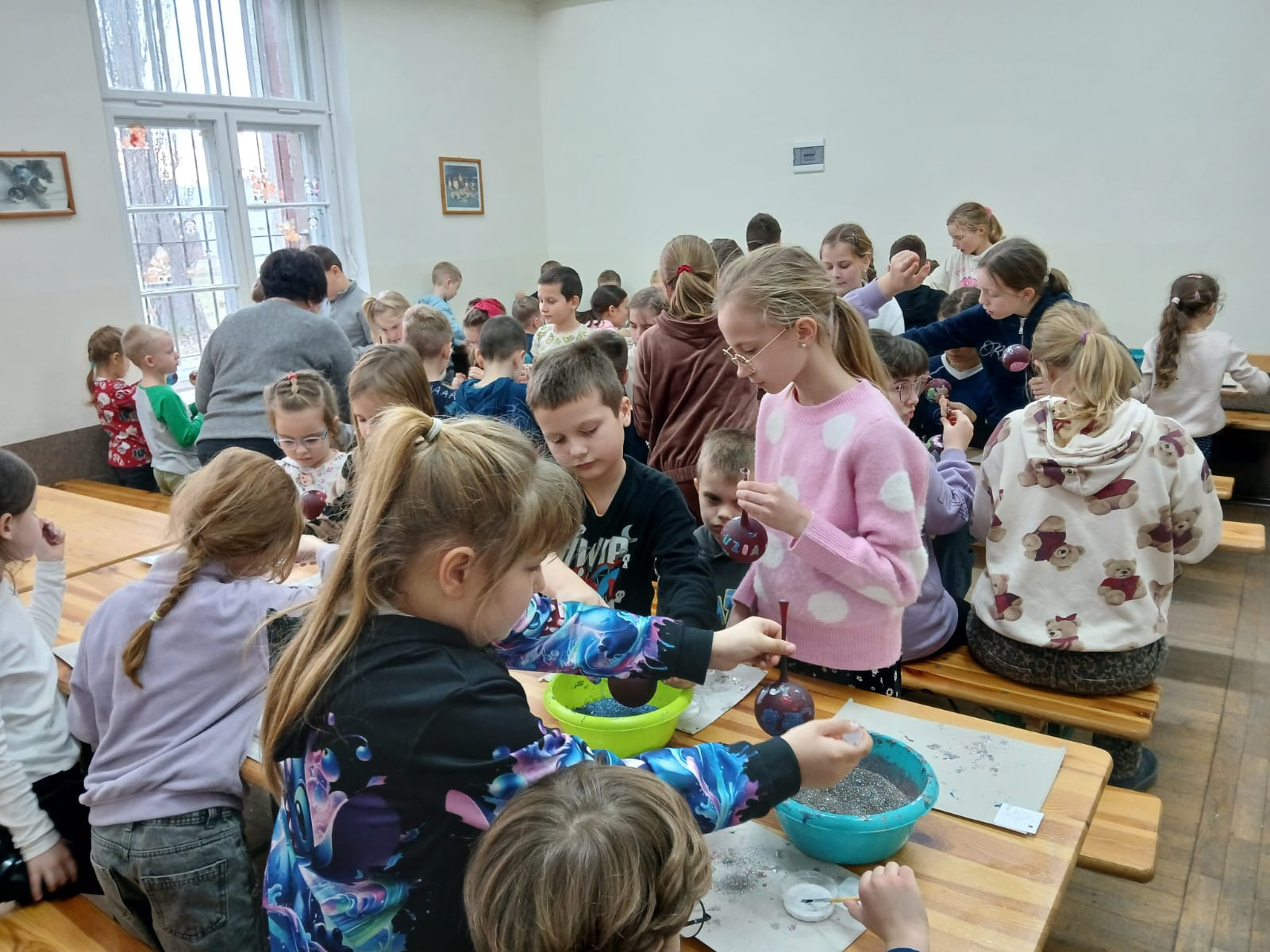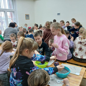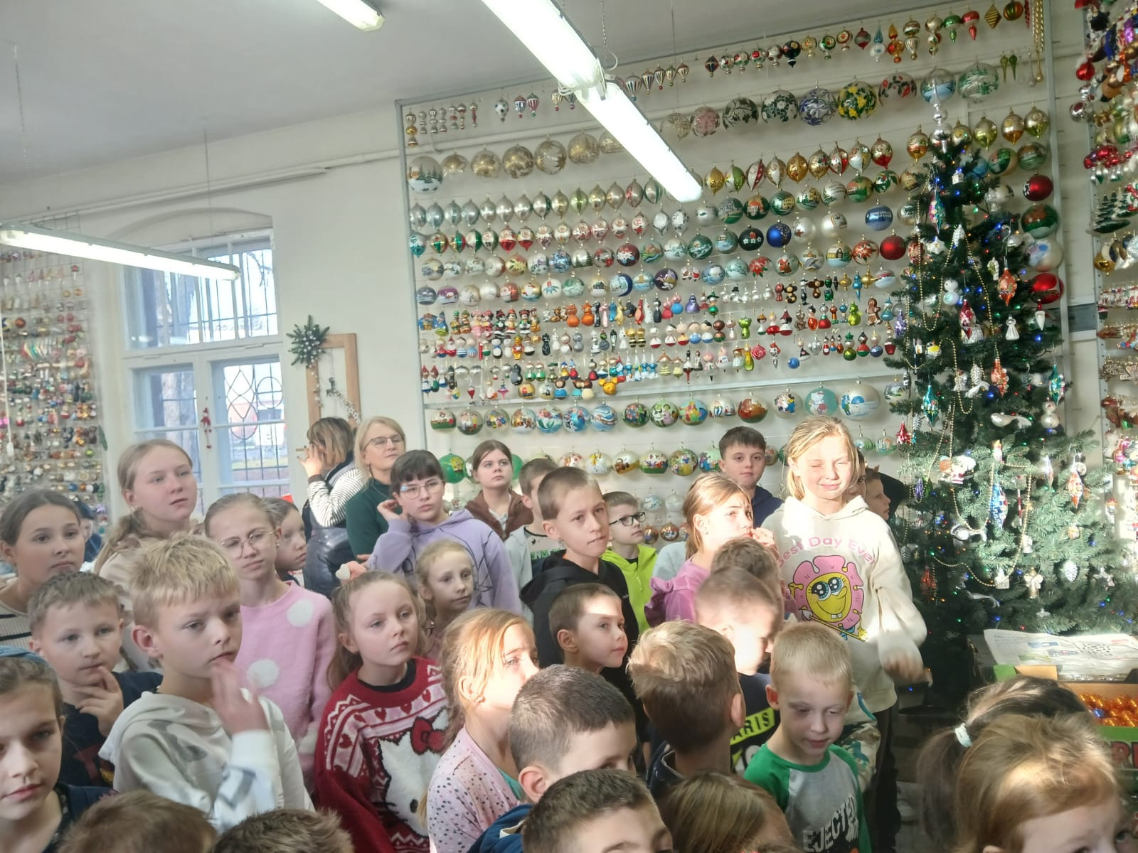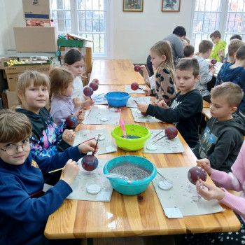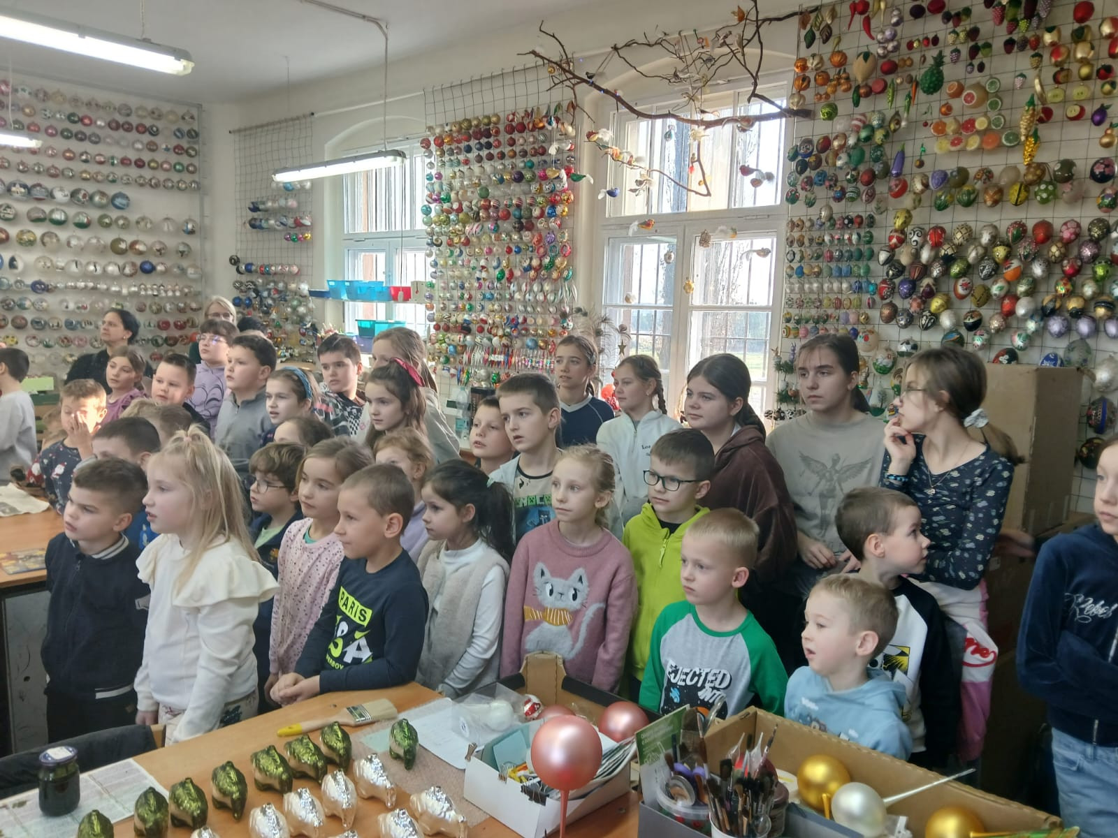 Największą atrakcją okazały się warsztaty plastyczne, podczas których każdy mógł samodzielnie ozdobić własną bombkę. Uczniowie wykazali się ogromną kreatywnością, tworząc niepowtarzalne wzory i kompozycje kolorystyczne. Gotowe ozdoby zabrali ze sobą jako pamiątkę z wycieczki.