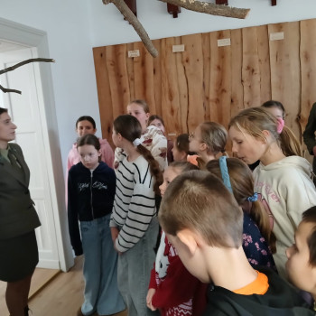 Po przyjeździe do Milicza uczestnicy zostali przywitani przez pracowników szkoły oraz nauczyciela historii i uczniów klasy 5 tutejszego technikum. Z ogromną życzliwością i zaangażowaniem oprowadzili i opowiedzieli nam o historii szkoły, która mieści się w pałacu, gdzie mieszkali Maltzanowie – wcześniejsi właściciele. Technikum Leśne jest szkołą z tradycjami w której uczniowie noszą mundury, co wyróżnia ich wśród uczniów innych szkół.