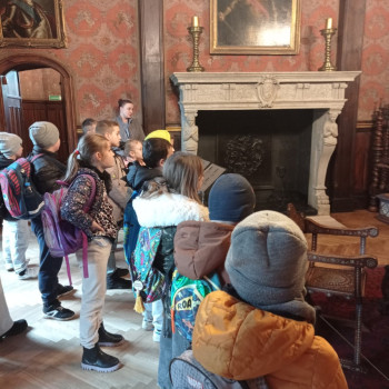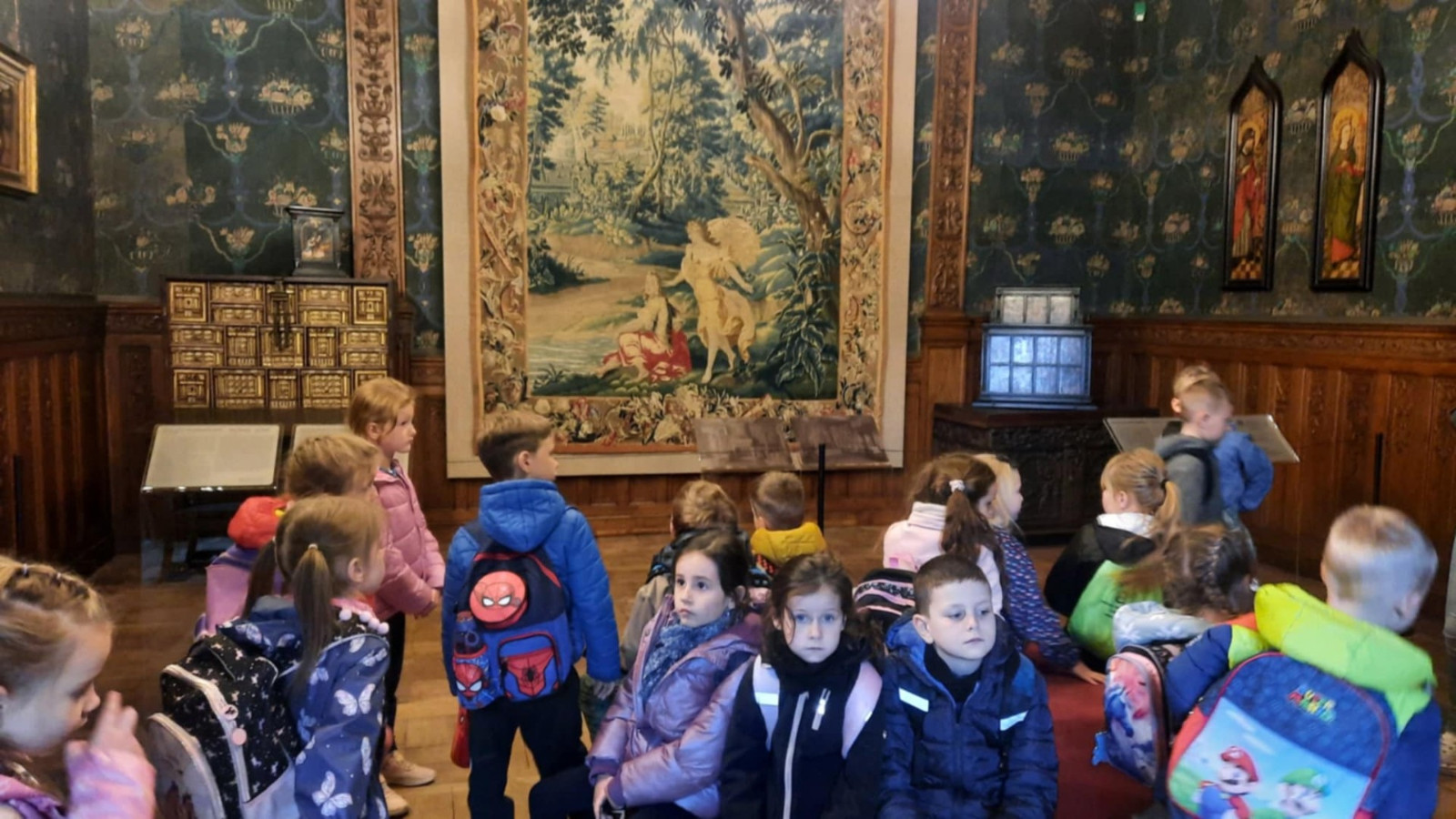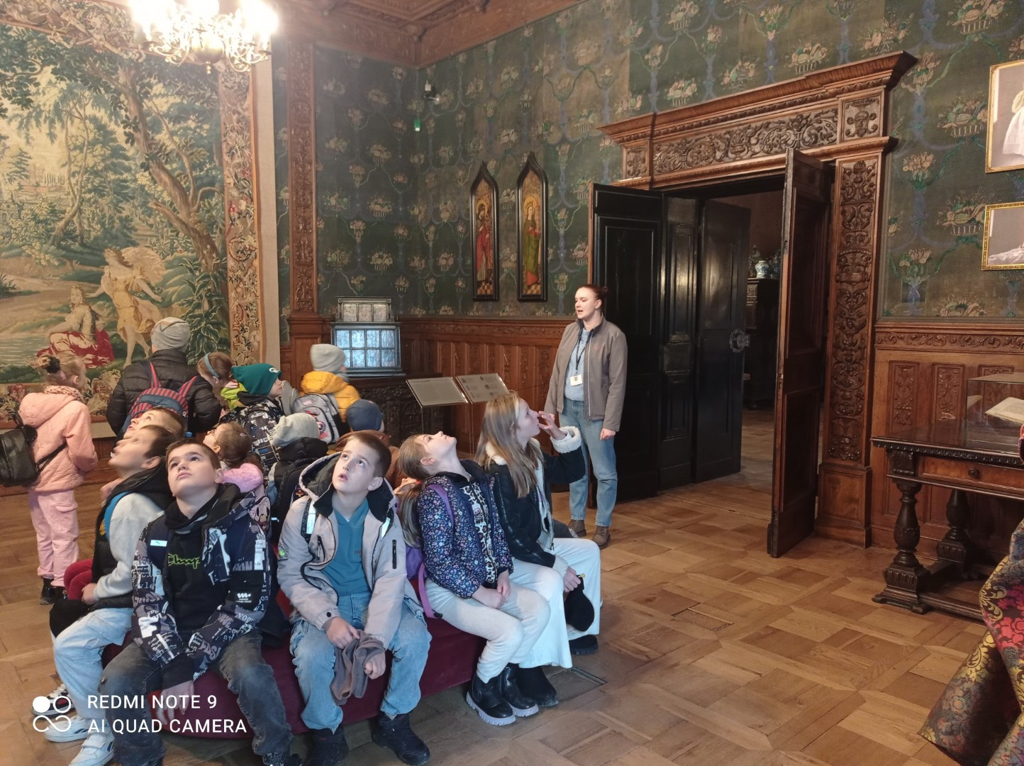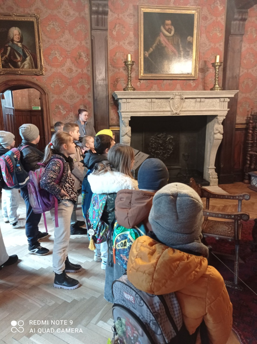 Pierwszym punktem wycieczki był udział w lekcji muzealnej „Czy zamek jest miejscem niezwykłym” połączonej ze zwiedzaniem Zamku w Gołuchowie. Podczas lekcji dzieci poznały tajemnice Zamku oraz jego dawnych mieszkańców.