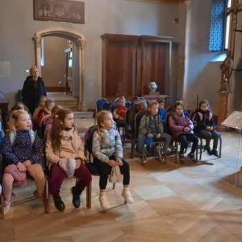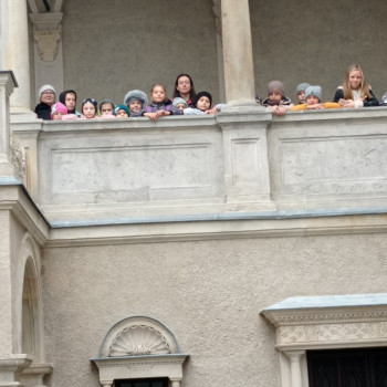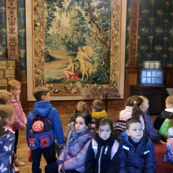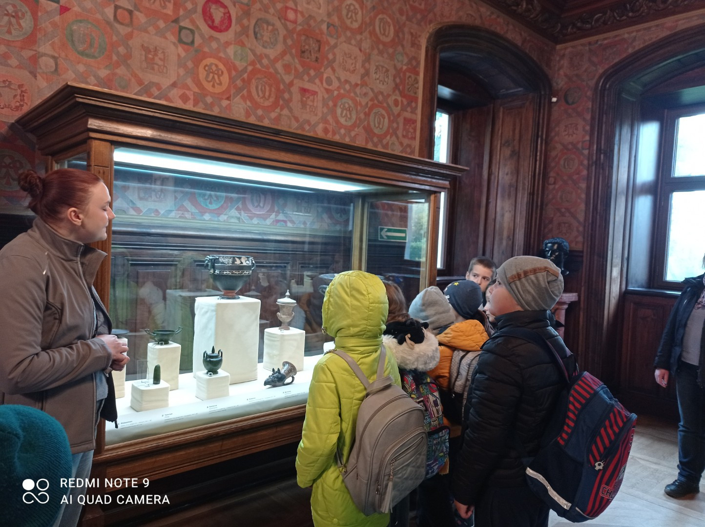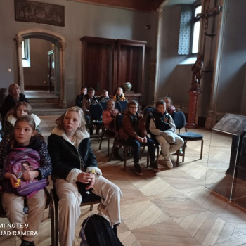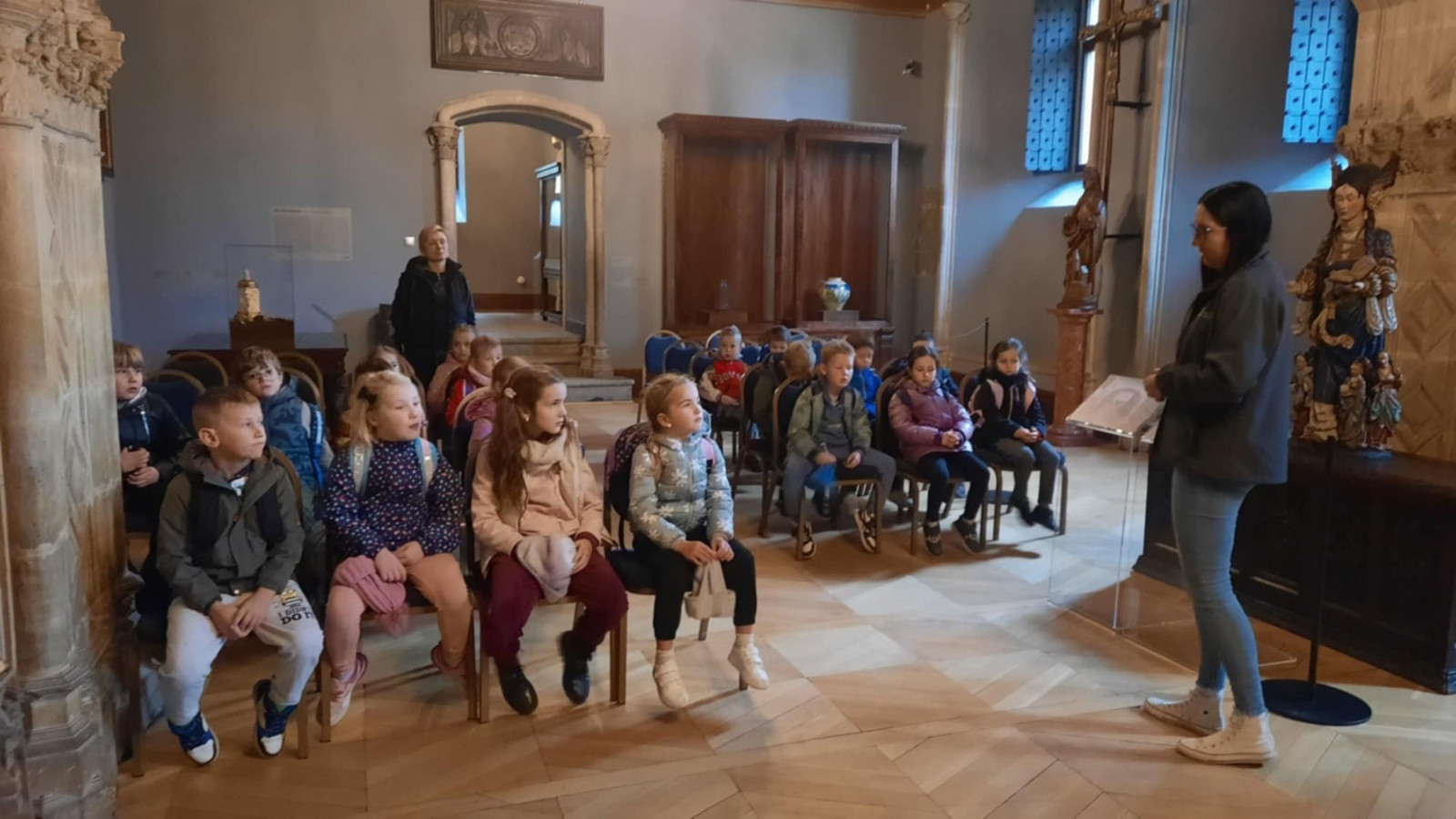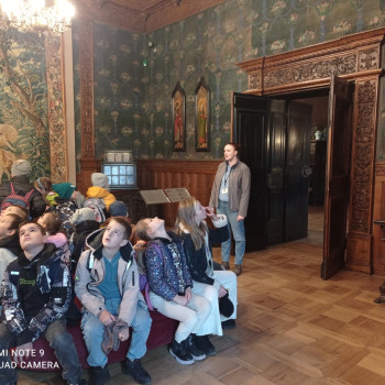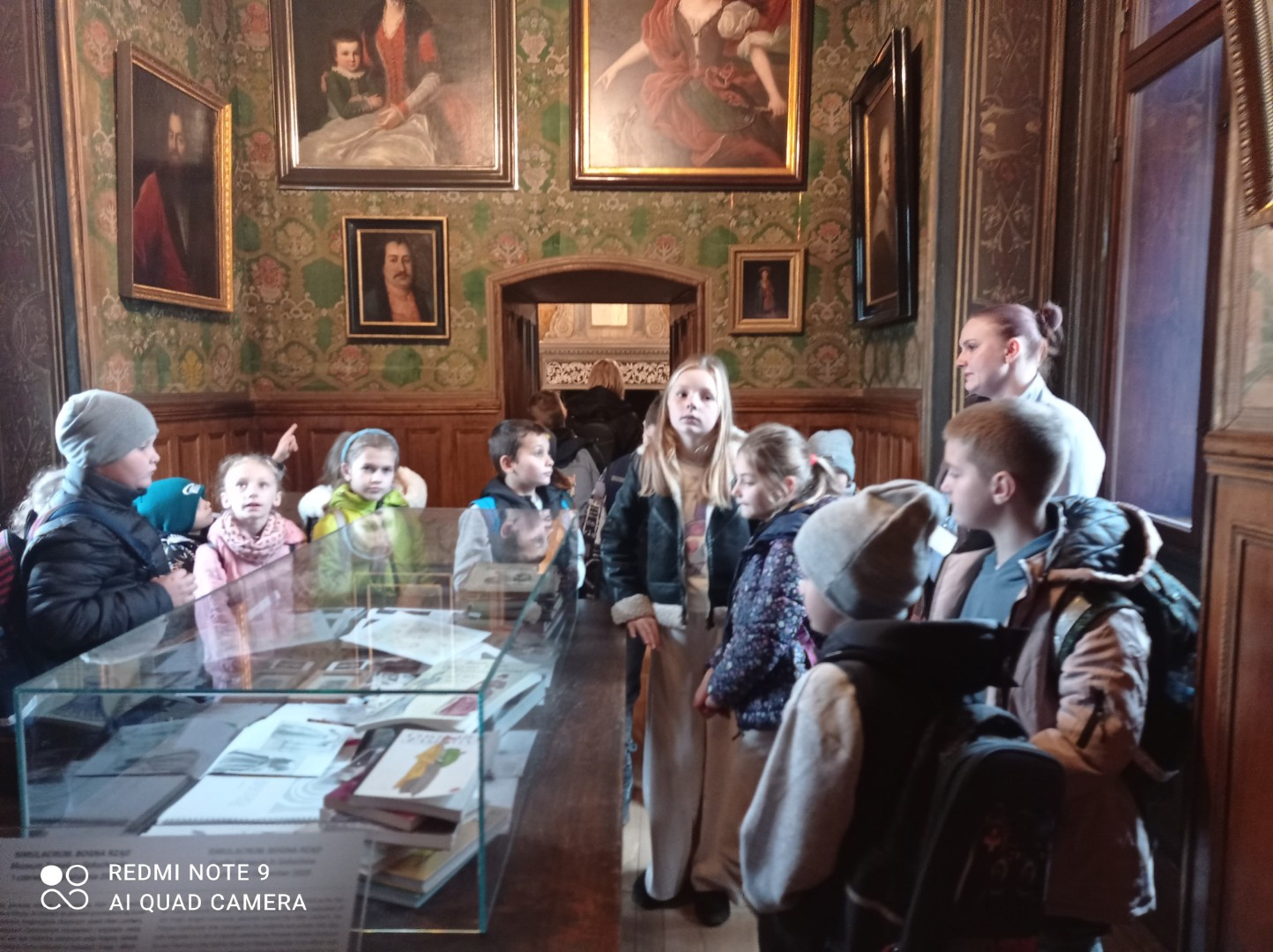 Pierwszym punktem wycieczki był udział w lekcji muzealnej „Czy zamek jest miejscem niezwykłym” połączonej ze zwiedzaniem Zamku w Gołuchowie. Podczas lekcji dzieci poznały tajemnice Zamku oraz jego dawnych mieszkańców.
