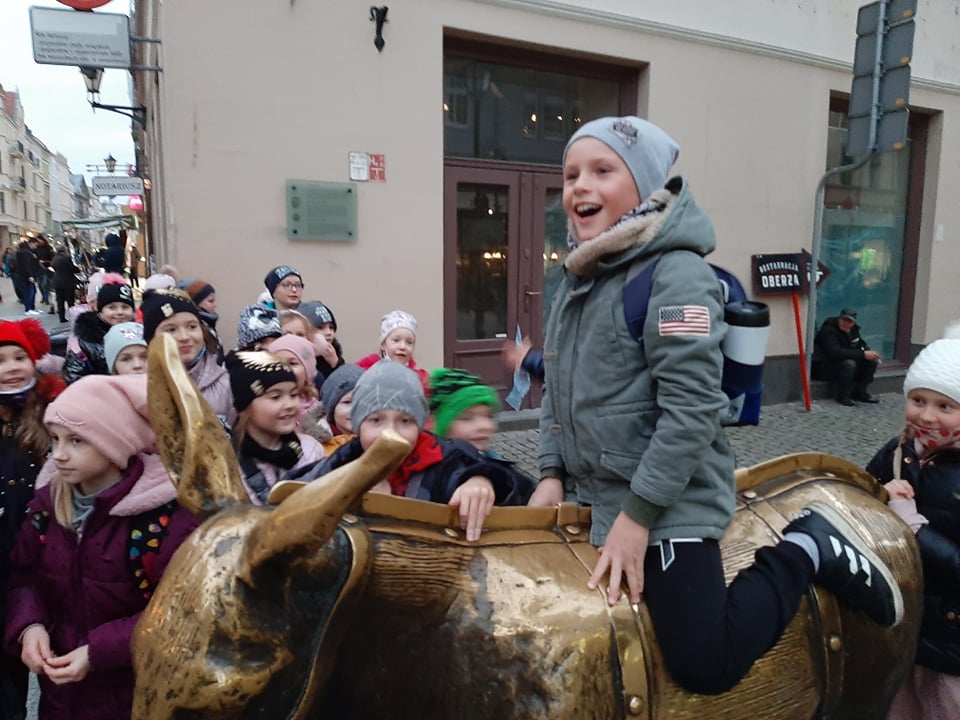 Zgodnie z programem, uczniowie naszej szkoły po przyjeździe do Kruszwicy, oglądali romańską kolegiatę, pobliski Pomnik Powstańców Wielkopolskich, Mysią Wieżę oraz odbyli rejs statkiem ,,Rusałka” po jeziorze Gopło. Z Kruszwicy udali się do Torunia, gdzie spacerowali po starówce, oglądali ratusz, krzywą wieżę, pomnik i dom Mikołaja Kopernika oraz ruiny zamku krzyżackiego. Następnie udali się do Muzeum Piernika, gdzie podczas warsztatów własnoręcznie zrobili ciasto na piernik, które zostało dla nich wypieczone. Zwiedzili również pomieszczenia muzealne oraz wysłuchali legend o pierniku toruńskim. Po przerwie obiadowej, udali się na seans w Planetarium. Następnie odbyli spacer nad Wisłą, w czasie którego podziwiali widoki i wysłuchali ciekawostek na temat pobliskich budowli.
