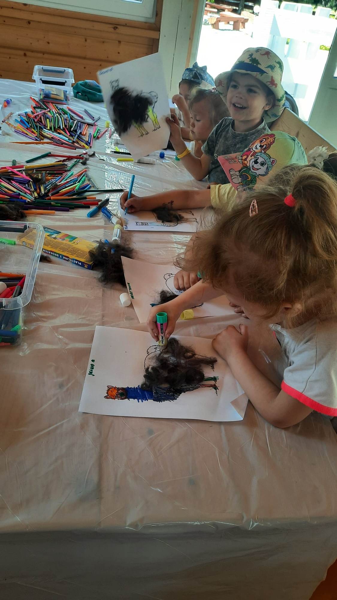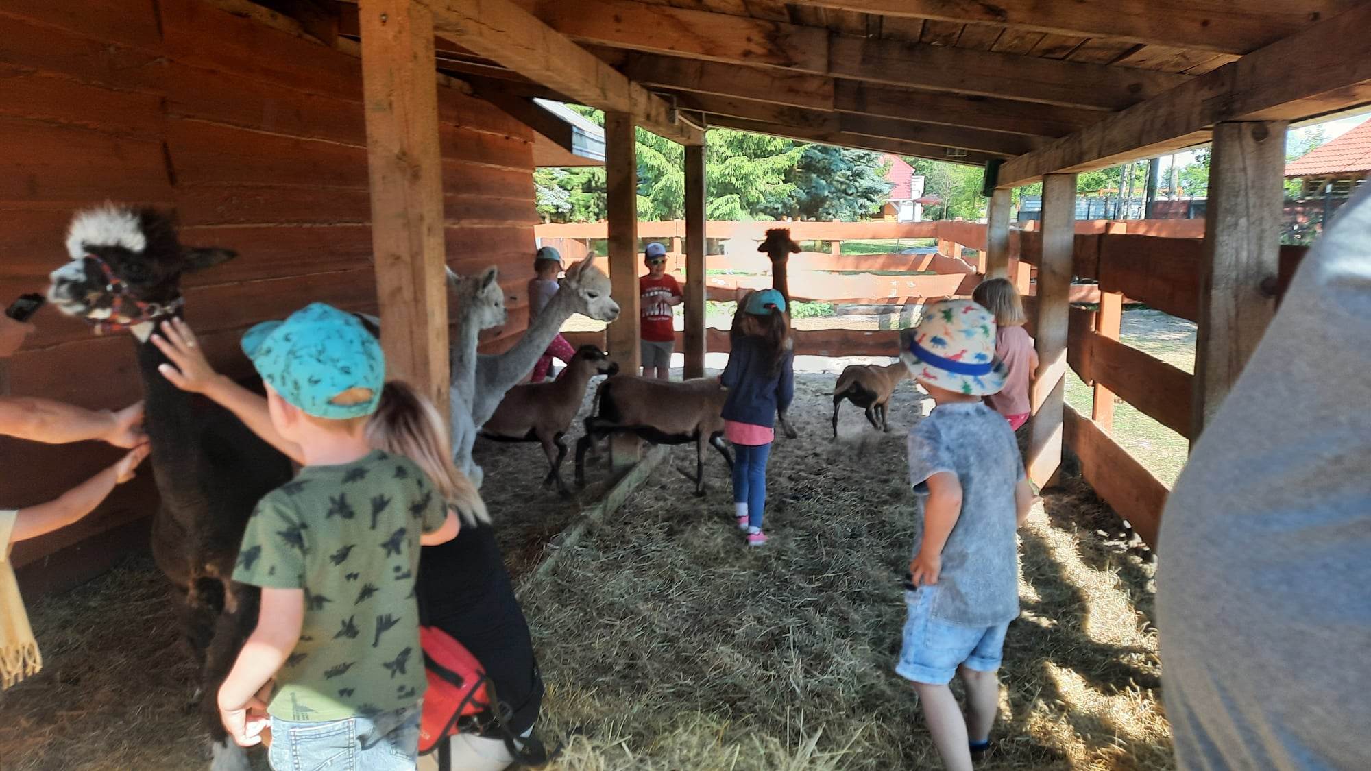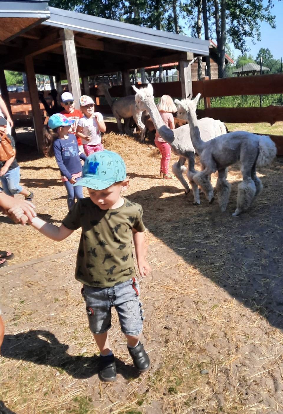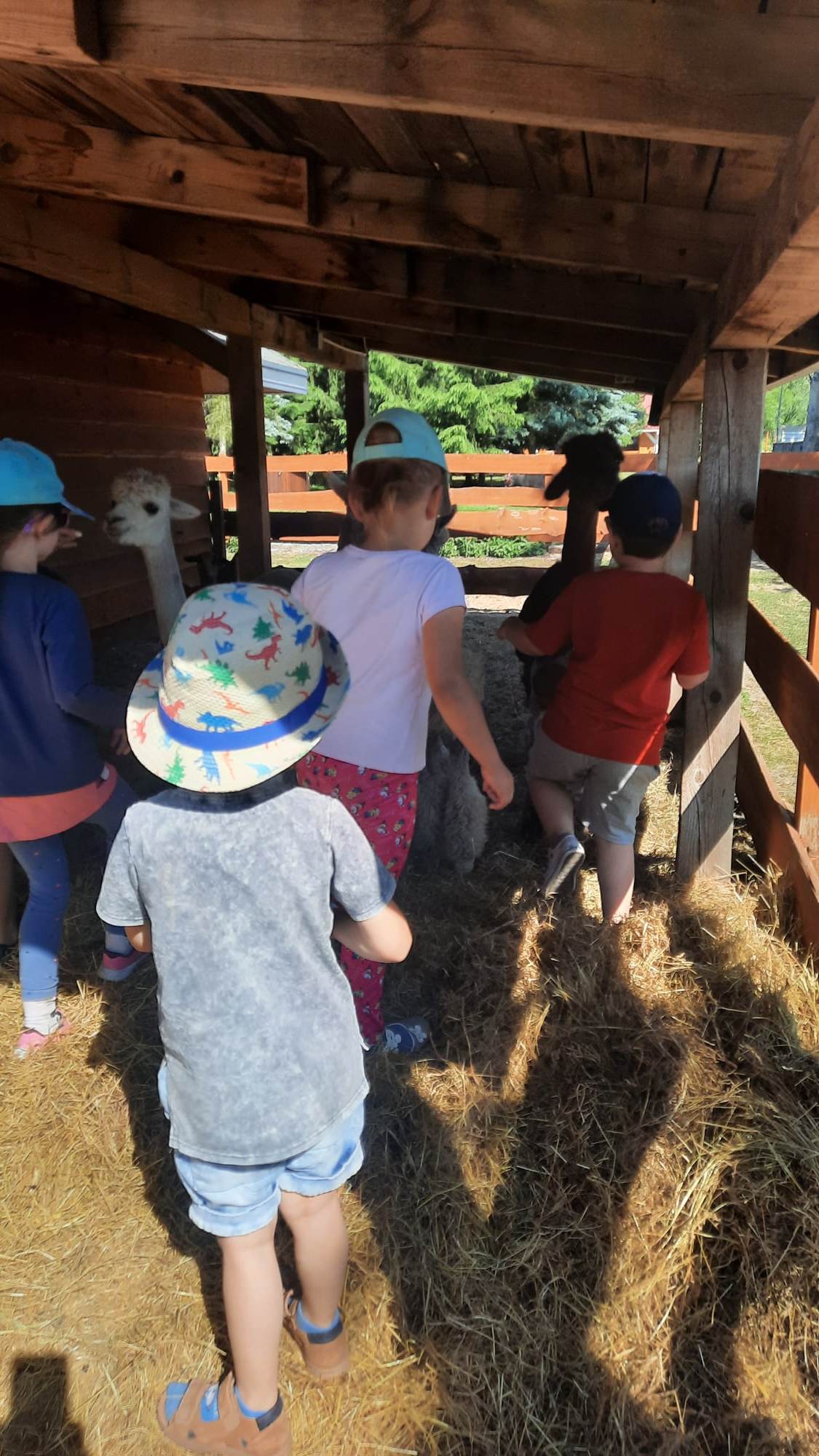 12 czerwca 2023 r. przedszkolaki wybrały się na wycieczkę do agroturystycznego "Ranczo Targówka", położonego we wsi Miłaczewskie Młyny. Dzieci spotkały tam wiele zwierząt: alpaki, kucyki, kozy, pawie, czaple, papugi, króliki i osiołka. Pod czujnym okiem opiekunów i przewodniczki pani Żanety dzieci karmiły i głaskały niektóre zwierzęta. Atrakcyjnym punktem wycieczki okazały się także warsztaty, na których nasi podopieczni zdobili sobie magnesy i wyklejali alpaki wełną. Na koniec został zorganizowany piknik, na którym dzieci zjadły kiełbaski pieczone nad ogniskiem.