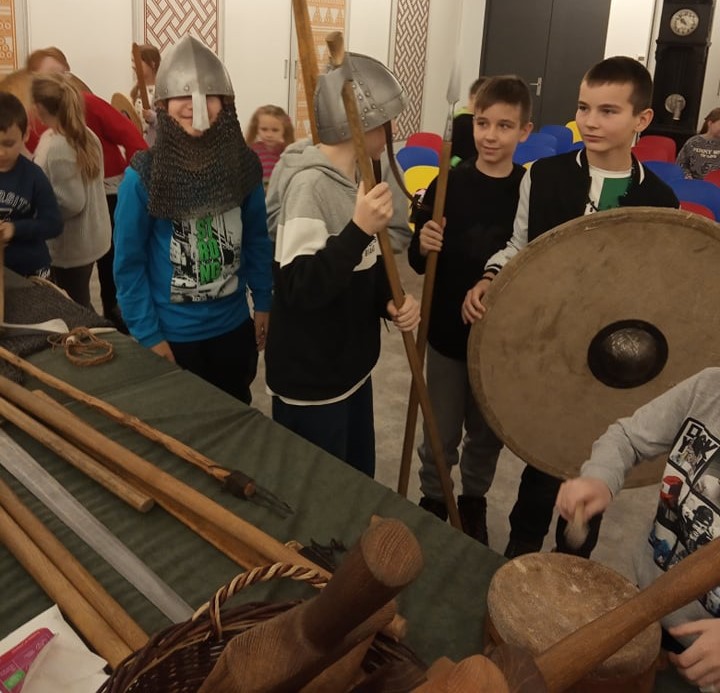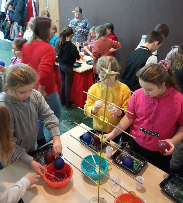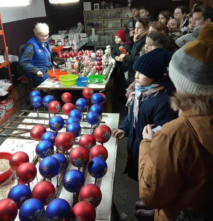W mroźny wtorek - 13.12.2022r. uczniowie klas I – VI udali się na wycieczkę do Gniezna. Po przyjeździe do historycznego miasta pierwsze kroki skierowaliśmy do Muzeum Początków Państwa Polskiego, gdzie uczestnicy odbyli lekcję muzealną na temat ,,Jak żyli ludzie 1000 lat temu?". Podczas tej prezentacji nie brakowało zdziwień, humoru i dobrej zabawy. Po pełnej wrażeń lekcji rozpoczęliśmy zwiedzanie bogatej ekspozycji muzealnej, która była uzupełnieniem tejże lekcji. Wreszcie przyszedł czas na pyszny obiad, który zjedliśmy w restauracji mieszczącej się w hotelu Adalbertus, zaledwie 30 metrów od Katedry Gnieźnieńskiej. Po odpoczynku, przewodnik zabrał nas do wytwórni ozdób choinkowych, gdzie poznaliśmy cały cykl powstawania bombek oraz wzięliśmy udział w warsztatach tworząc własnoręczne bombki. Zadowoleni i pełni przedświątecznych wrażeń szczęśliwie wróciliśmy do domu. W czasie realizacji programu wycieczki nie napotkano na żadne trudności.