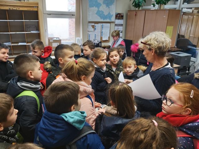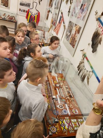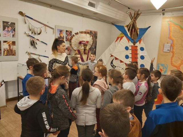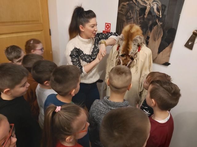 W dniu 4 marca uczniowie kl. I-III uczestniczyli w warsztatach wielkanocnych organizowanych przez Muzeum Miasta Turku im. Józefa Mehoffera. Dzieci miały możliwość wykonania pisanki metodą wstążkową. Uczniowie świetnie się bawili, a po zakończonej pracy dumnie prezentowali swoje ozdoby. Następnie Pani przewodnik zaprosiła wszystkich na wystawę czasową pt. "Spotkania z kulturą indiańską Ameryki Północnej i Południowej". Dzieci miały okazję zobaczyć domostwo tipi, stroje wojowników, kobiet i dzieci, instrumenty muzyczne, wachlarze, zabawki i wiele innych ciekawych eksponatów. W muzeum uczniowie mieli także okazję oglądać ekspozycję poświęconą turkowskiemu dziełu Józefa Mehoffera. Ostatnim punktem wycieczki była wizyta na poczcie. Dzieci dowiedziały się jak potrzebna i odpowiedzialna jest praca listonosza oraz poznały zakres usług pocztowych. Wszyscy zadowoleni i pełni wrażeń powrócili do szkoły.