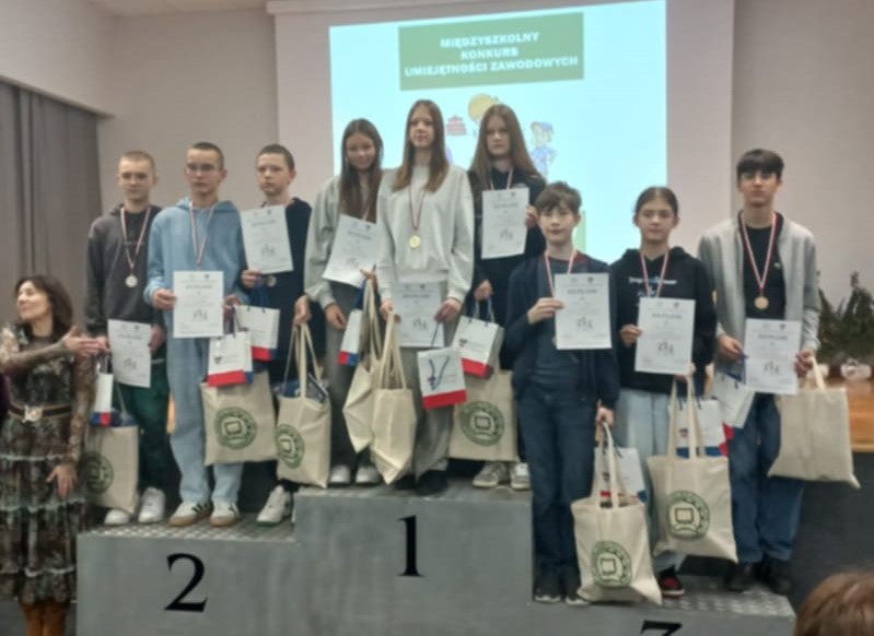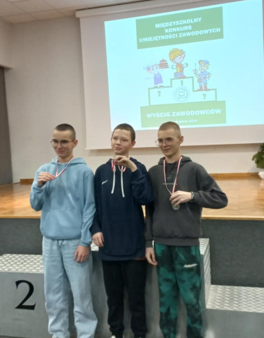 Dnia 28 listopada 2024 roku troje uczniów klasy ósmej wzięło udział w Międzyszkolnym Konkursie Umiejętności Zawodowych w Zespole Szkół Rolniczych w Kaczkach Średnich. Konkurs ten miał na celu zapoznanie się z ofertą edukacyjną oraz kierunkami kształconymi w tej szkole. Na trasie ,,wyścigu’’ w poszczególnych pracowniach zawodowych drużyny z powiatu tureckiego oraz sieradzkiego konkurowały w wykonywaniu zadań związanych z konkretnym zawodem. Poprzez wspólną zabawę uczniowie mieli możliwość poznania kierunków kształcenia zawodowego oraz możliwości jakie daje praca w wybranym zawodzie. Uczniowie naszej szkoły w składzie: Kacper Werbiński, Tomasz Danisz, Jakub Grzywacz zajęli drugie miejsce spośród 16 drużyn. Zostali oni obdarowani nagrodami, medalami oraz dyplomami. Do szkoły wrócili z ciekawymi doświadczeniami oraz własnoręcznie wykonanymi rękodziełami.